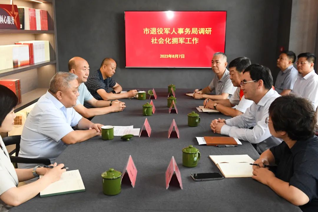 09日2023-088月7日,市退役軍人事務局黨組書記、局長孫宏波帶隊到我區調研社會化擁軍工作,鼓勵企業做大做強,為天津市社會化擁軍工作發揮模范帶頭作用。區委副書記、區長李春陪同。孫宏波在李春的陪同下,察看企業運營情況,隨后,主持召開座談會,聽取區退役軍人事務局關于老兵茶空間建設使用情況及“社會化擁軍+”工...[查看詳情]