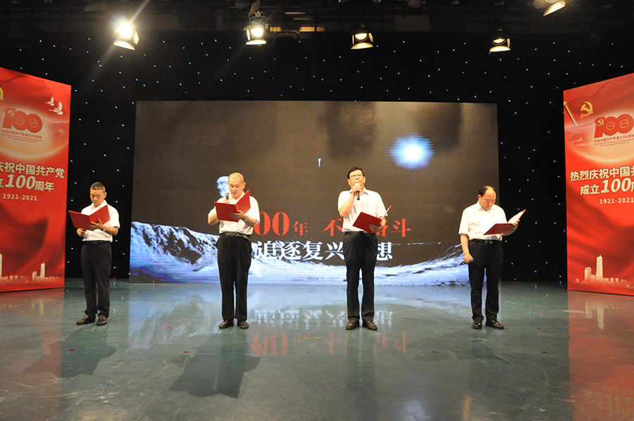 安達(dá)集團(tuán)黨委書(shū)記、董事長(zhǎng)崔洪金帶領(lǐng)集團(tuán)部分黨員參加此次活動(dòng)。并以工商聯(lián)會(huì)員企業(yè)黨委委員身份參演了經(jīng)典誦讀《永遠(yuǎn)跟黨走》,聲情并茂、慷慨激昂,傳播著百年黨史紅色經(jīng)典作品的獨(dú)特魅力,觸動(dòng)著每一位觀眾的心弦,贏得現(xiàn)場(chǎng)陣陣掌聲。