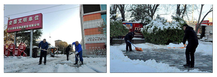 11月7日,天津市迎來今冬首場強降雪。據天津市氣象臺發布信息,降雪量已達暴雪級別。降雪過后,集團各廠區道路都被厚厚的積雪所覆蓋,車輛行駛緩慢,行人步履蹣跚,厚厚的積雪給行人和過往車輛造成極大的不便和安全隱患。