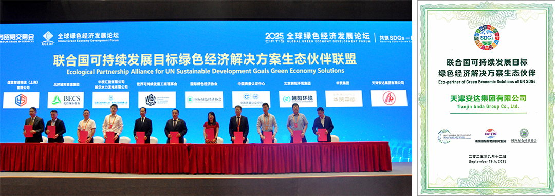 多年來,安達集團始終緊跟國家綠色發展戰略,持續加大在綠色技術研發、環保項目推進等方面的投入。此次在服貿會全球綠色經濟發展論壇上的精彩表現,是對安達集團在綠色環保領域多年深耕的高度認可,也為集團未來的發展帶來了新的機遇和挑戰。未來,安達集團將在黨委書記、董事長崔洪金的帶領下,繼續發揮自身優勢,不斷創新綠色技術與服務,深化行業合作,為推動全球綠色經濟發展和提速 2030 年可持續發展目標進程貢獻更多力量